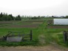 [From Mar-21-2021] An unusual absence of snow in this early look at the field. The end of the compost pile poking into the photo is color-coordinated with the spring browns of all the dead vegetation. Center and right, a good amount of the market garden area is pretilled—clear and near set to go. In the mid distance, the little greenhouse is still standing, while the big guy is still bare, having had its plastic savagely ripped open by unusually high winds. That white object is a round bale of straw, sheathed in protective plastic, ready to use as mulch. It’s the broad canvas for another new growing season!